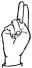 На ћирилици написано КОСТАДИН ДУБОВАЦ састоји се из 15 слова [?]. Исписано ћириличном једноручном азбуком за глувонеме: